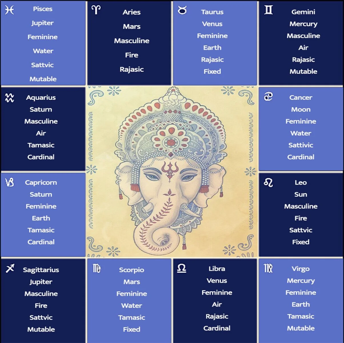 In Jyotish or Vedic astrology the signs are called Rahis, ‘the shine of light’. The Rashi’s are the containers that carry the energy of the planet which rules it. The signs are containers for the consciousness of their ruler and holds all the resources it needs to feel at home and do its job.